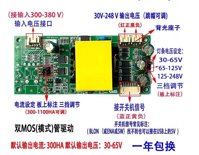 - Corriente de salida predeterminada: 300 HA; voltaje de salida predeterminado: 30–65 V